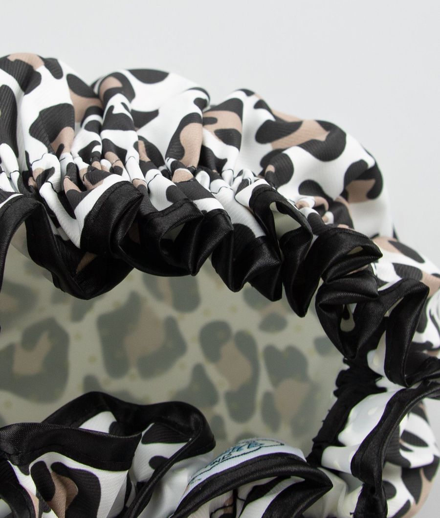 Regular price £7.99Take a walk on the wild side with this vintage inspired, leopard print Shower Cap. It’s fierce but feminine and lined with waterproof white polka dots, so it’s sure to keep your locks dry and free from frizz. With a black trim and soft elasticated opening, it’s comfortable to wear and keeps those pesky fly-aways tucked away.